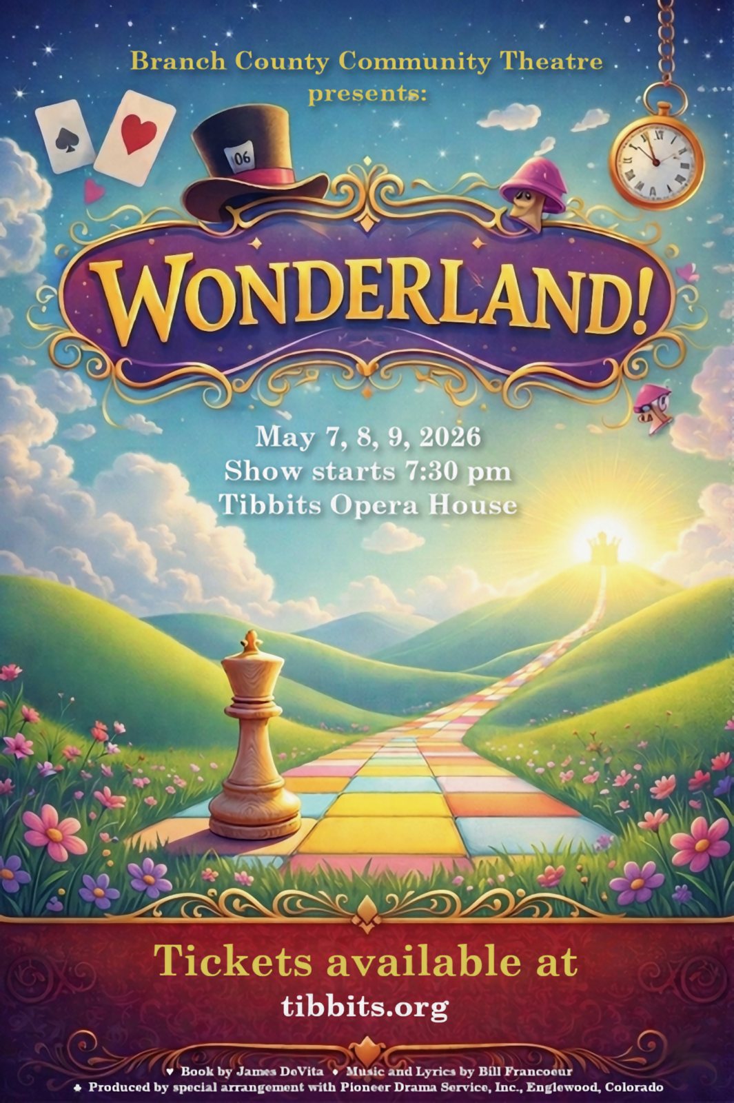 Auditions for our spring musical, Wonderland! Book adapted by James Devita, Music and Lyrics by Bill Francoeur. An unabashedly silly adaptation of Lewis Carroll's Through the Looking Glass. With hip-hopping music, it is an upbeat, coming-of-age story that audiences of all ages will adore. You'll recognize some of your favorite familiar characters of Alice's wonderland along with meeting dozensoezens of new ones: a baseball team, a gospelspeel group called The Responsibilities, a train conductor, star-struck tourists, plastic light-saber wielding knights and much more.